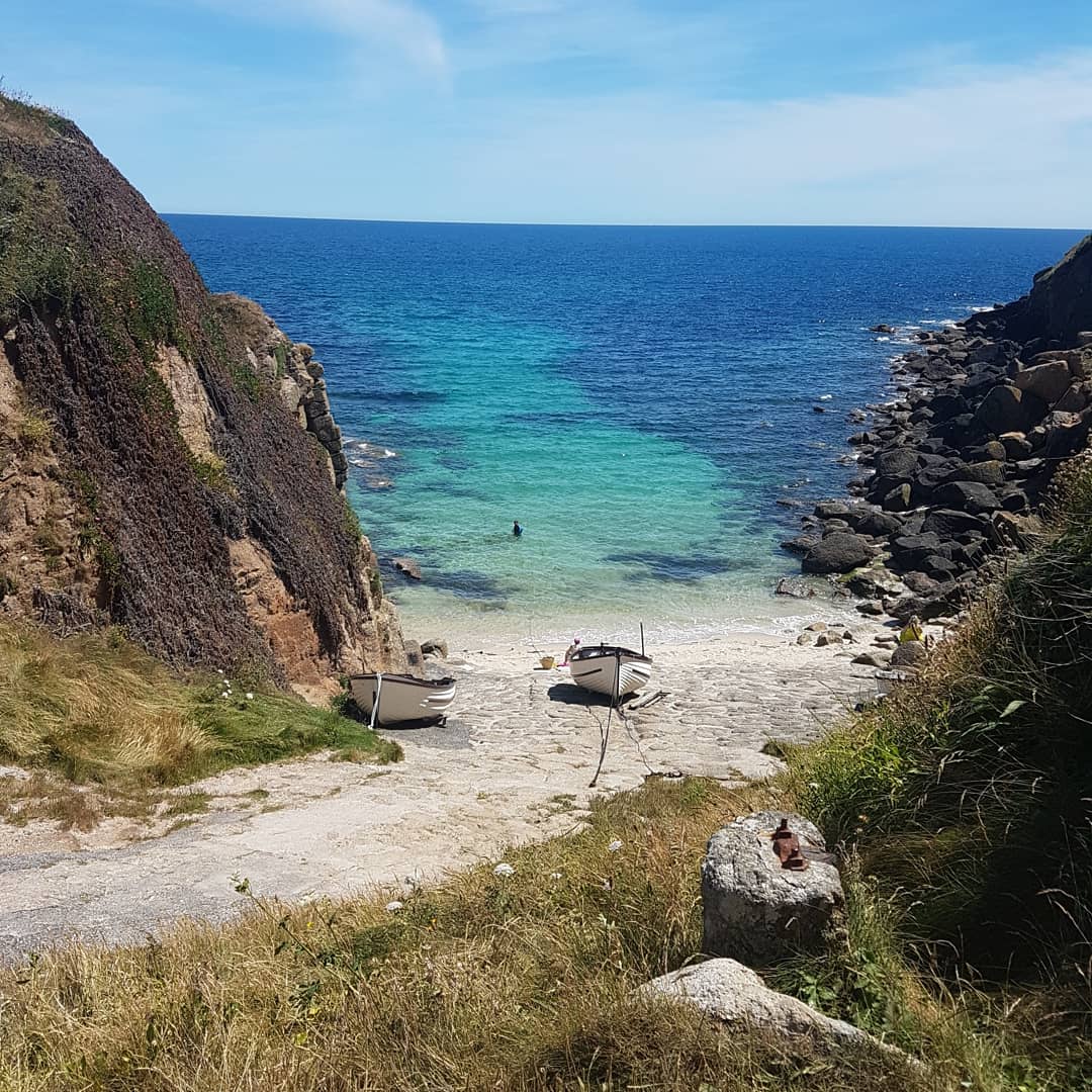 On down to Sennen where the surf and beach are big – as well as the storms in winter sometimes engulfing the quayside houses . Lands end is beautiful although somewhat commercial nowadays . Porthgwarra where you can walk through a hole in the granite cliff conjures images of sea weed being hauled up to the farms on carts as well as smugglers and wreckers!